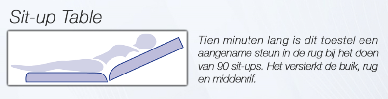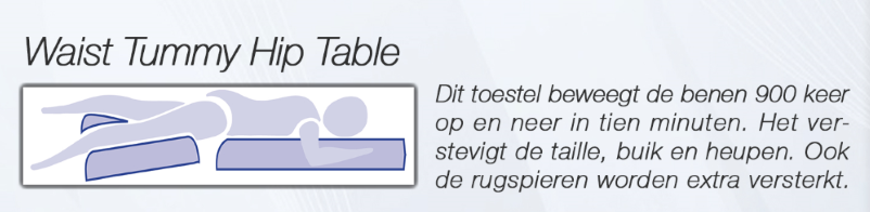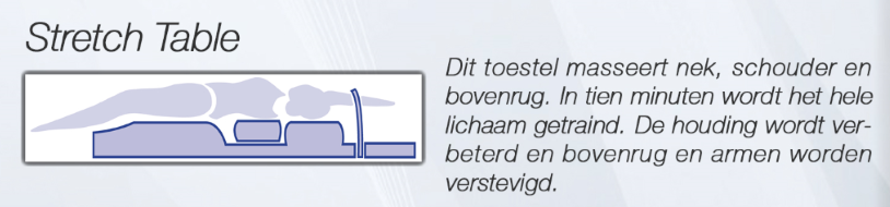 Door middel van 6 verschillende bewegingsbanken wordt steeds een ander gedeelte van uw lichaam geactiveerd. Door het bewegen wordt zowel de bloedsomloop als de zuurstoftoevoer gestimuleerd. Door de lage intensiteit is de kans op blessures nihil.